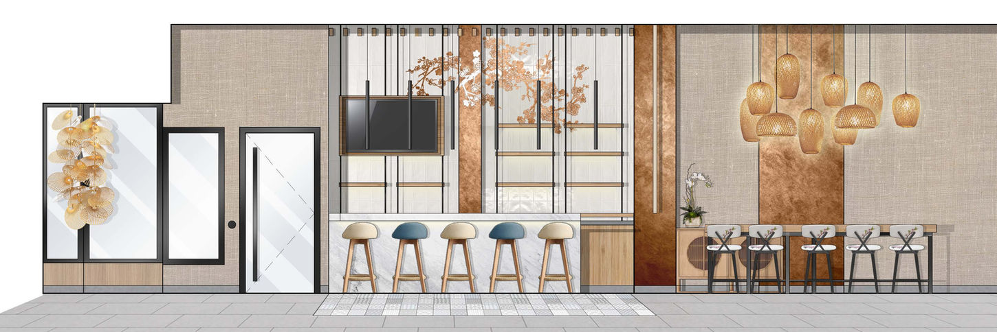 Scope of Work: Full Front-of-house Interior Design, Custom Furniture Design, and Finish Selection